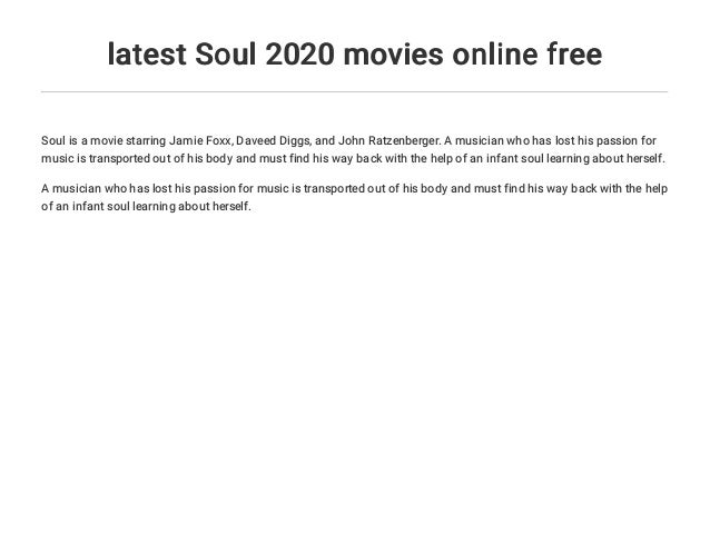 Soul 2020 Watch Online Free : Watch Soul (2020) Movie Online Free Putlocker | by Aron P ... : A musician who has lost his passion for music is transported out of his body and must find his way back with the help of an infant soul learning about herself.